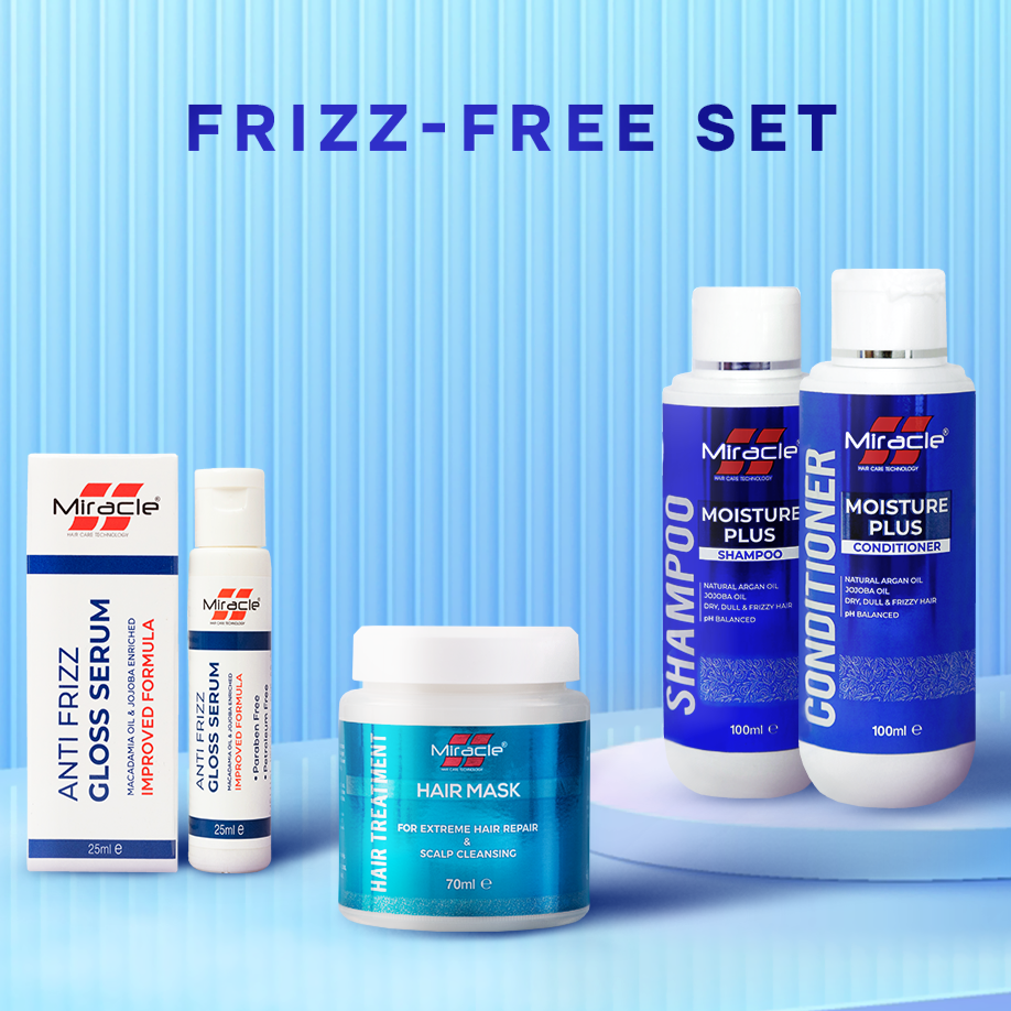 Achieve smooth, shiny, and frizz-free hair with our Frizz-Free Set, a carefully crafted collection of four essential products designed to deeply hydrate, nourish, and restore your hair’s natural beauty. Infused with rich ingredients like Argan Oil and Jojoba Oil, this set helps repair damaged hair while enhancing elasticity and managing unruly strands, leaving your hair soft, shiny, and easier to style.